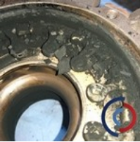 L'huile du moteur qui pénètre dans le turbocompresseur du côté de l'admission conduit le plus souvent à l'accumulation de calamine d'huile à l'emplacement du joint d'étanchéité du rotor du turbocompresseur. L'huile brûlée accumulée provoque l'usure du palier et de la gorge du rotor (emplacement de la bague d'étanchéité du rotor), ce qui entraîne par conséquent l'« expulsion » de cette bague.
